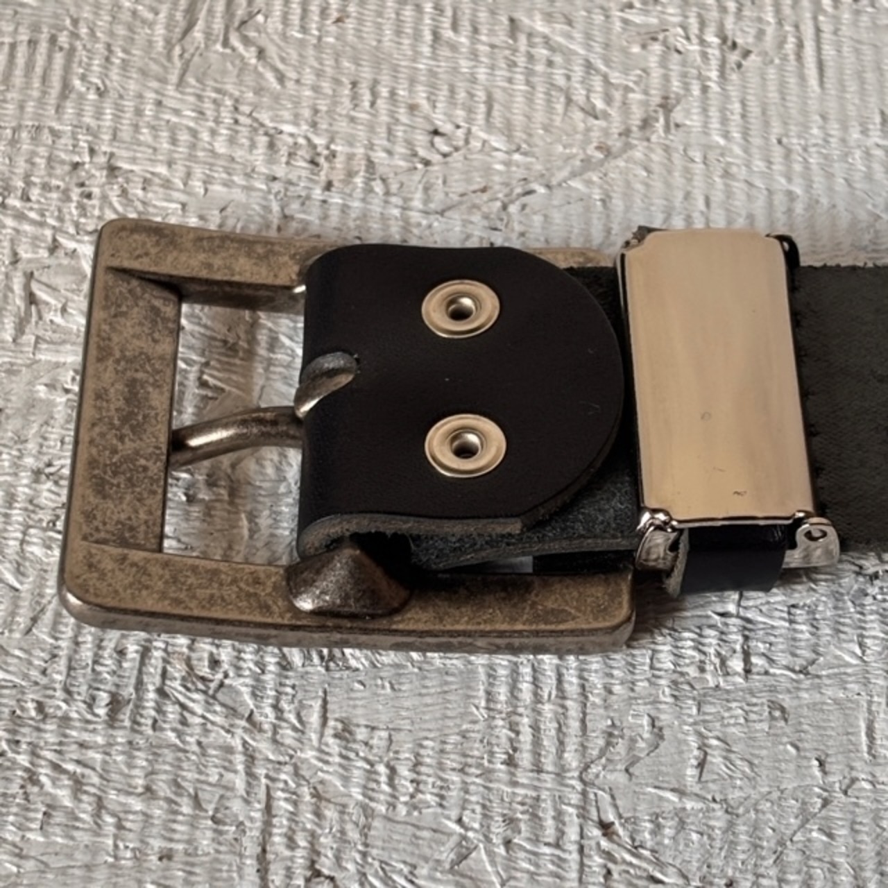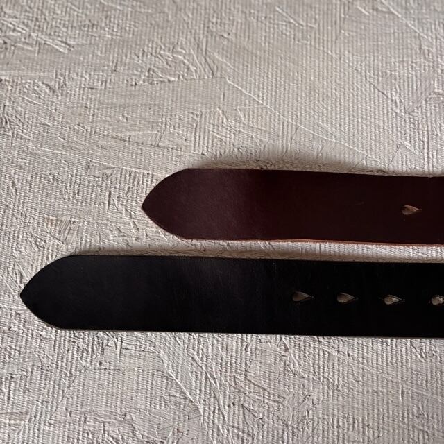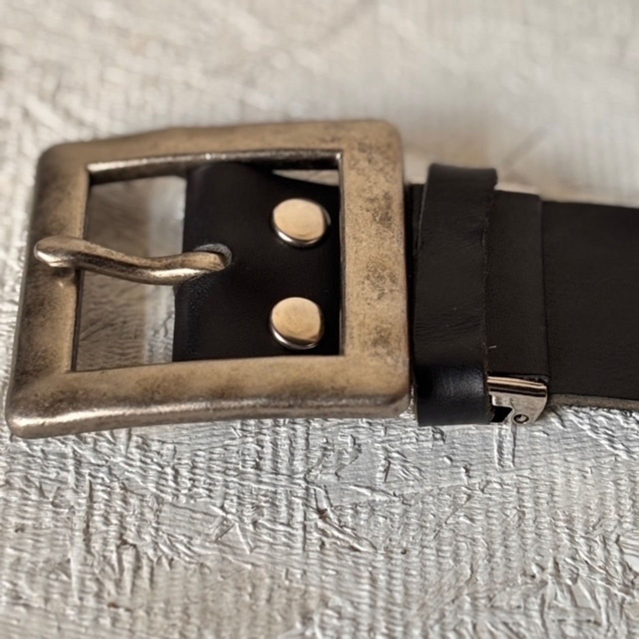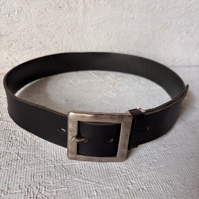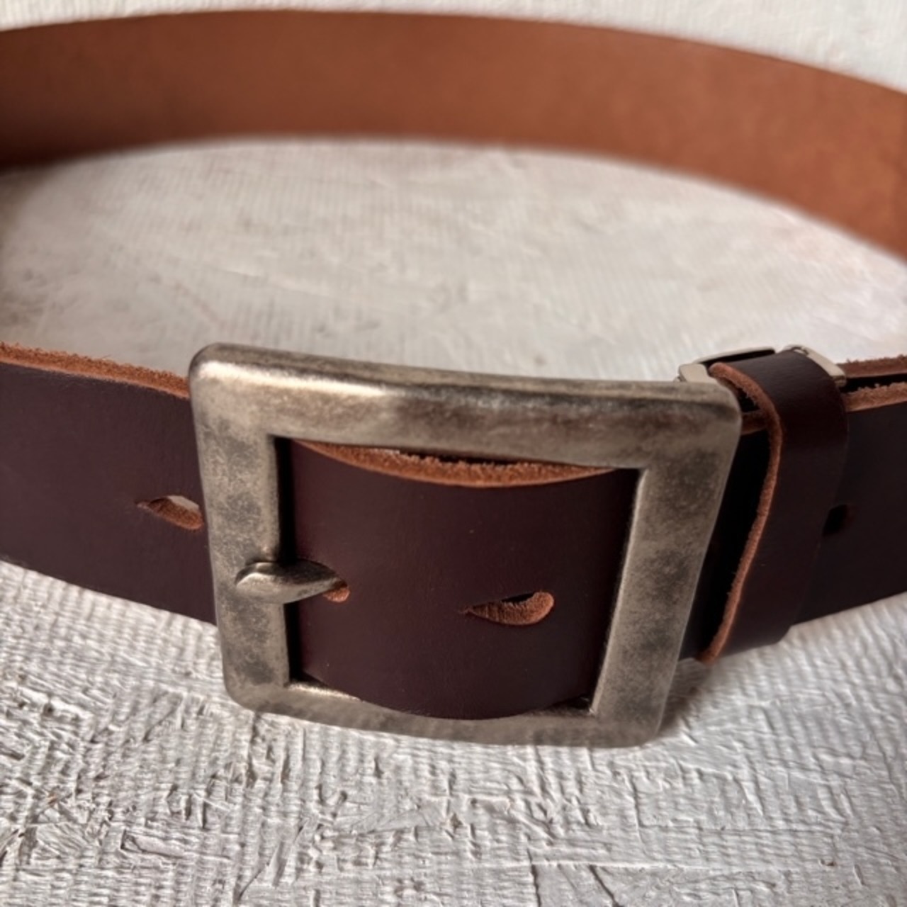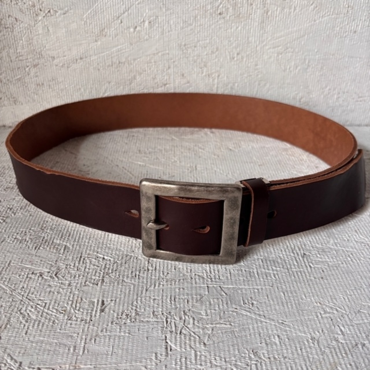 このレザーベルトは、ヌメ革ならではの耐久性と使い込むほどに増す風合いが魅力です。カジュアルからフォーマルまで幅広いシーンで活躍し、着こなしのアクセントとしても最適です。バックルにはスクエアデザインを採用し、洗練された印象を与えます。