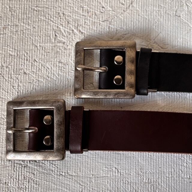 ■シンプルで洗練されたスクエアバックルレザーベルト