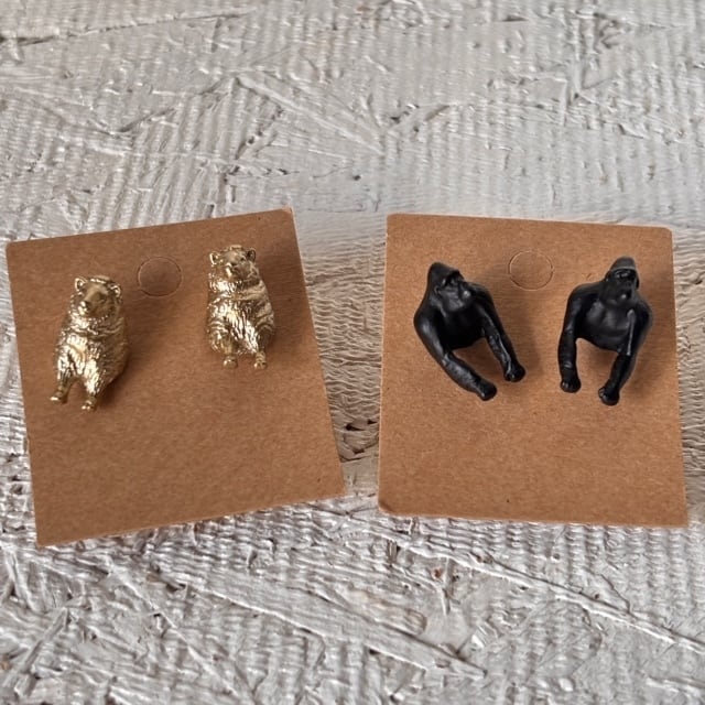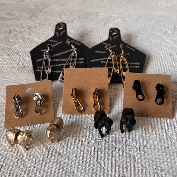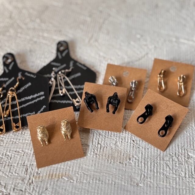 個性的なゴリラとひつじ、ジッパーピアスや安全ピンピアスなど、ユニークなデザインが揃い、カジュアルスタイルにもぴったり。友人とのカジュアルな集まりや、ちょっとしたお出かけでも注目を集めること間違いなしです!