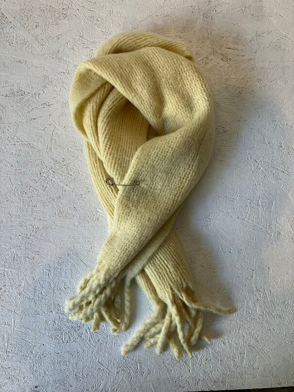 幅35cmのちょうど良いサイズ感が特徴で、肩掛けにも使いやすく、様々なスタイルに合わせやすいデザインです。軽やかな着け心地は、あなたの魅力を引き立て、カジュアルなコーディネートにも、ちょっとしたお出かけにもぴったりです!さらに、ニットピン付きなので、アレンジを楽しむことができるのも嬉しいポイントです。